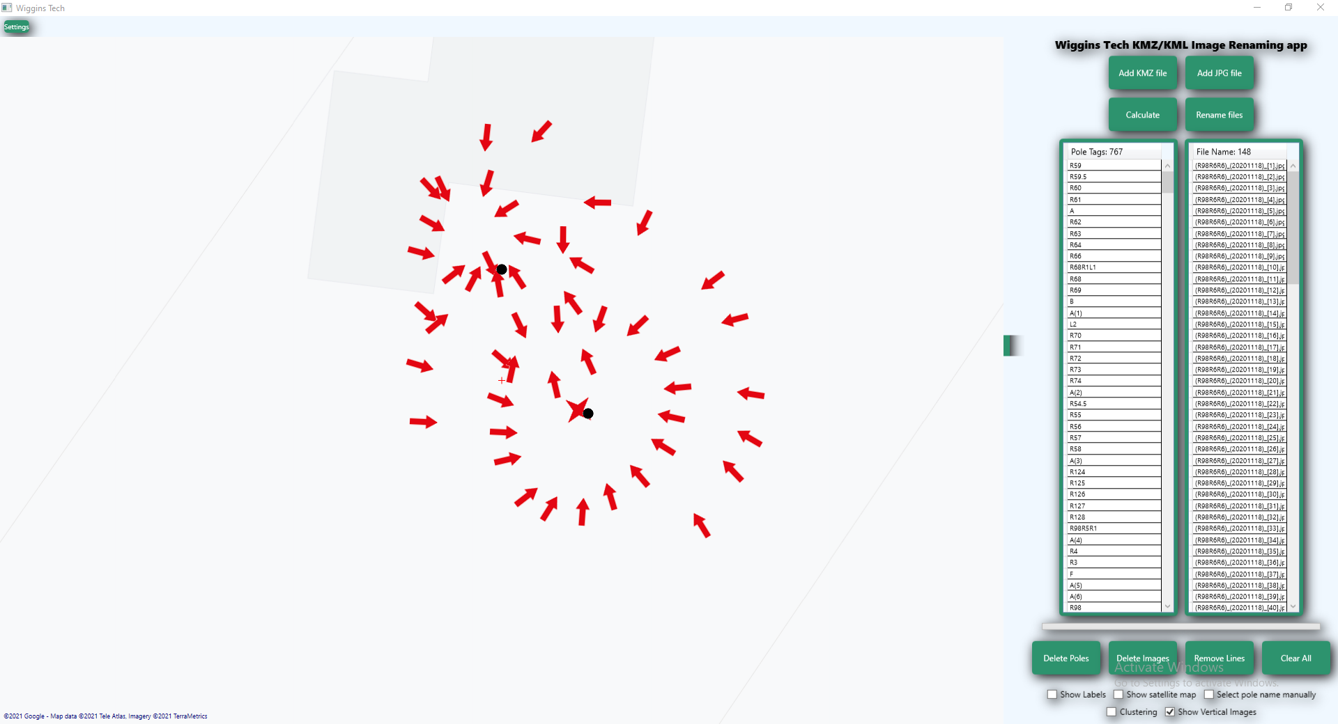 Manual processing of these datasets was extremely time-consuming and error-prone. The application provides visual tools to automatically correlate inspection images with pole locations and allows operators to review and correct associations before batch renaming the images.