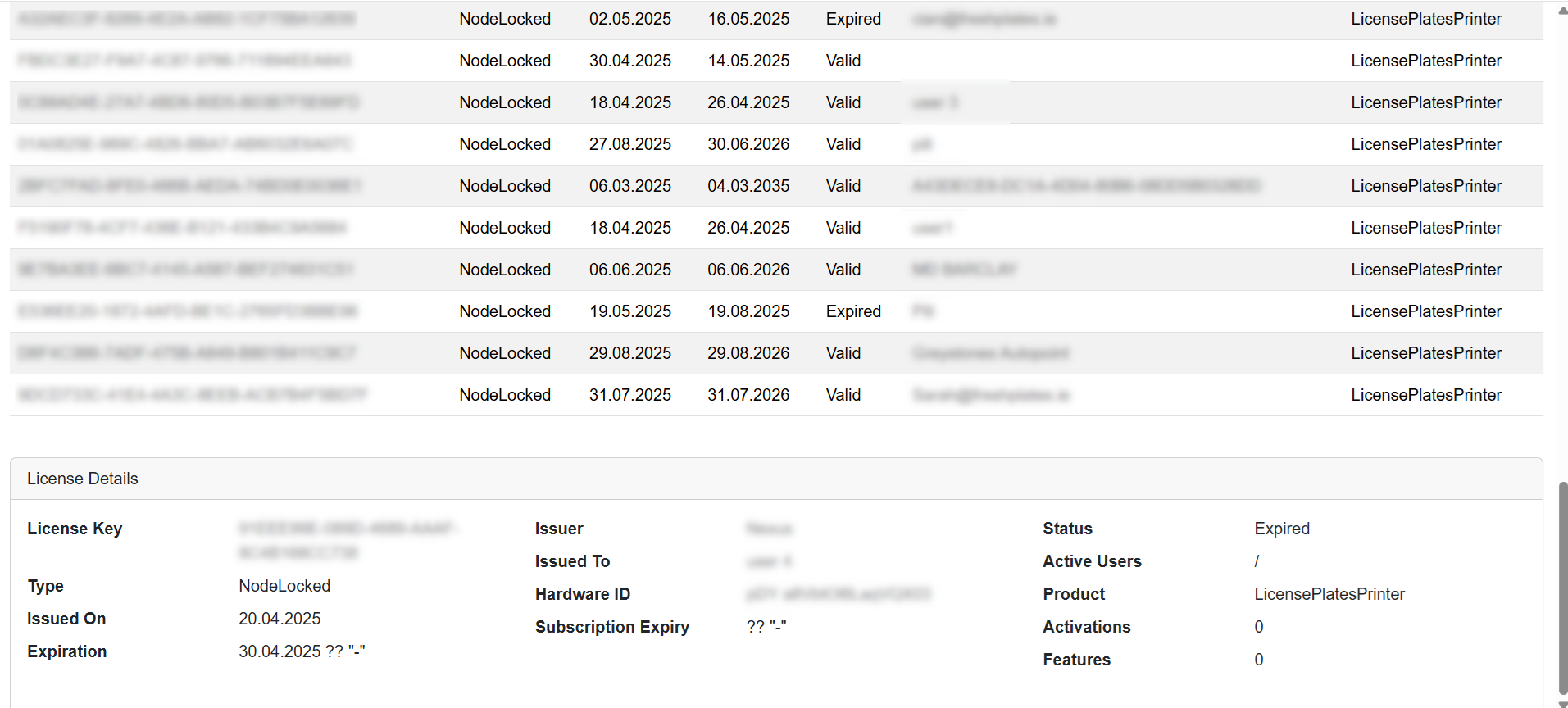 In addition to the desktop client, a web-based administration panel was implemented to manage licensing, system configuration, and operational settings. This allows centralized control without interrupting production workflows.